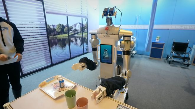比如帮老人翻身时,算法必须在毫秒间完成成百上千次力控计算(往哪个方向最省力、手该用多大的力等等),避免造成生硬与不适;